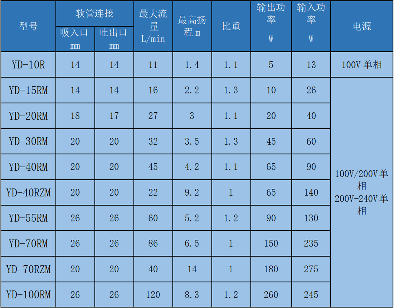備注:YD-10R沒有螺紋連接型。 液體溫度范圍:0℃—80℃(輸出液體溫度低于0℃時請咨詢業務部) 液體粘液范圍:30mPa.s(比重為1S.G.時)。