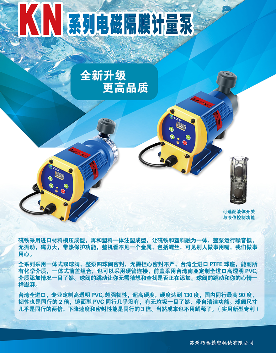 全系列采用一體式雙球閥,整泵四球閥密封,無需擔心密封不嚴,臺灣全進口PTFE球座,能耐所有化學介質,一體式前蓋組和,也可以采用硬管連接,前蓋采用臺灣南亞定制全進口高透密PVC,介質添加情況一目了然。球閥的跳動讓你無需猜想和查找是否正在添加。球閥的跳動和你的心情一樣澎湃。